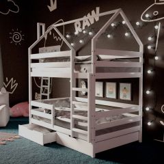 *Стоимость указана за модули: Кровать-домик двухъярусная 80*190 Белый (Ящики в стоимость не входят)