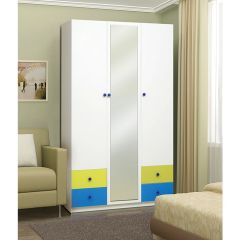 Шкаф 3-х дверный с ящиками и зеркалом "Радуга" станет прекрасным дополнением к детской комнате.