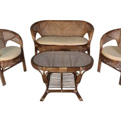 Комплект мебели для террасы 02/15 включает в себя: 2 кресла, плетеный двухместный диван, столик журнальный, подушки из материала улучшенного качества.