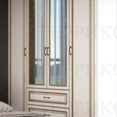 ЖЕНЕВА №1 Шкаф 4-х ств. с 2зерк., 2мя ящ. (ЛДСП бел/МДФ софт светл с пат зол) вы можете купить в интернет-магазине Larana.market по цене 77 590 руб. Только качественная мебель от Российских брендов. Если у вас возникли вопросы или вам нужна консультация по наличию, срокам доставки, ценам, обращайтесь любым удобным способом.